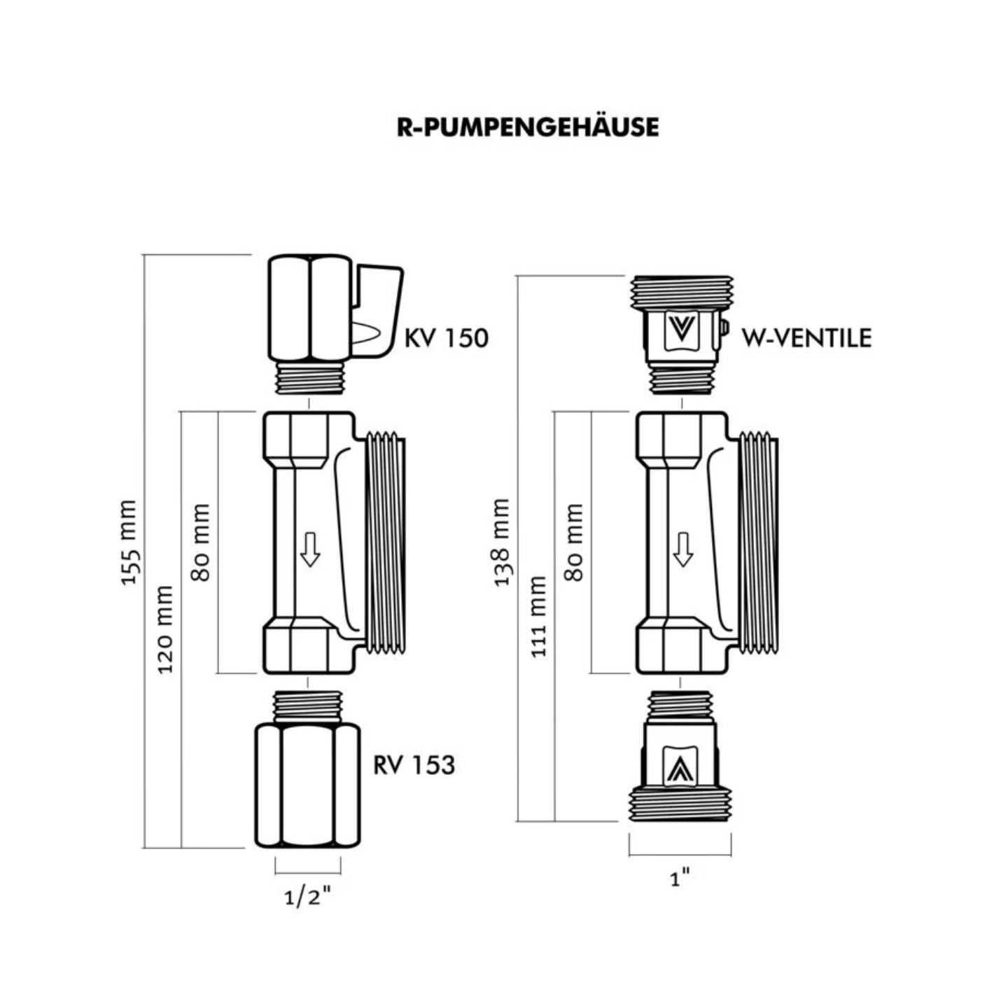 Der Einbau von R 1/2" Pumpen ist nur in Kombination mit dem abgestimmten Rückflussverhinderer RV 153 auf