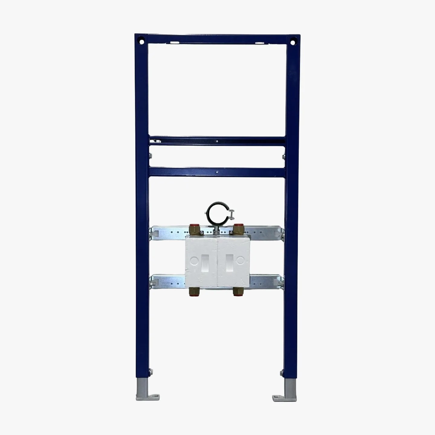 Der Unicount Koax OT 2" ist die Variante ohne T-Stück, entwickelt für die Direktmontage in Geberit DUOFIX Vorwandinstallationssysteme, mit dem Standard-Achsabstand von 420 mm. Die Einheit wird direkt auf die vormontierten Rahmenschrauben aufgesteckt — ohne Spezialwerkzeug. Die Anschlussplatten mit integrierter Schalldämmung gewährleisten die vollständige Einhaltung der Anforderungen an den akustischen Wohnkomfort.