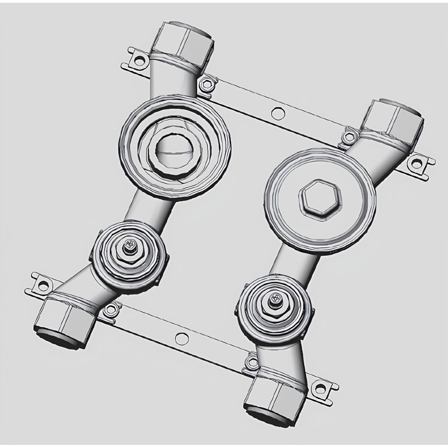 2" recessed water meter for technical cabinets, distribution shafts and service rooms. Without cover plate.